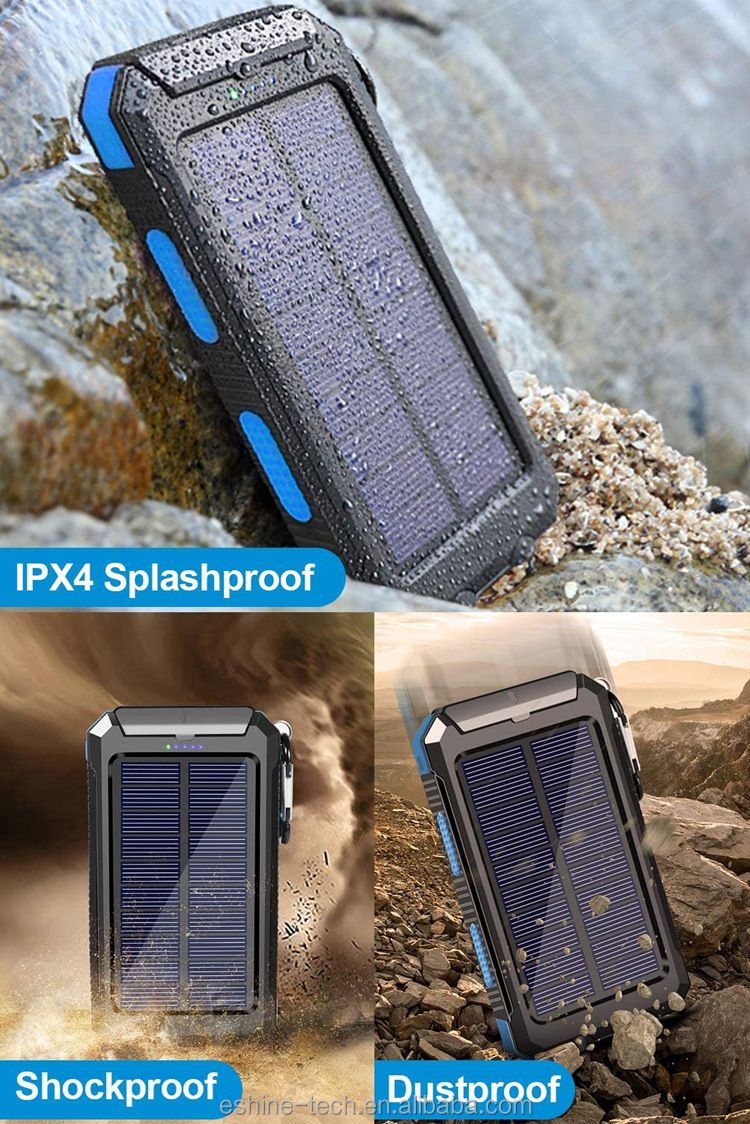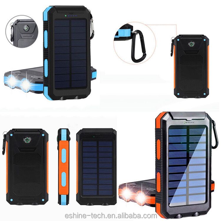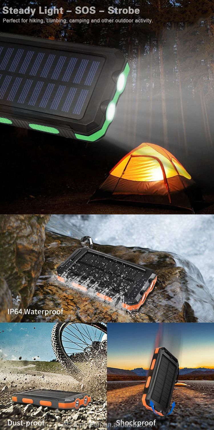 10000mAh Dual USB Waterproof Solar Power Bank with Flashlight